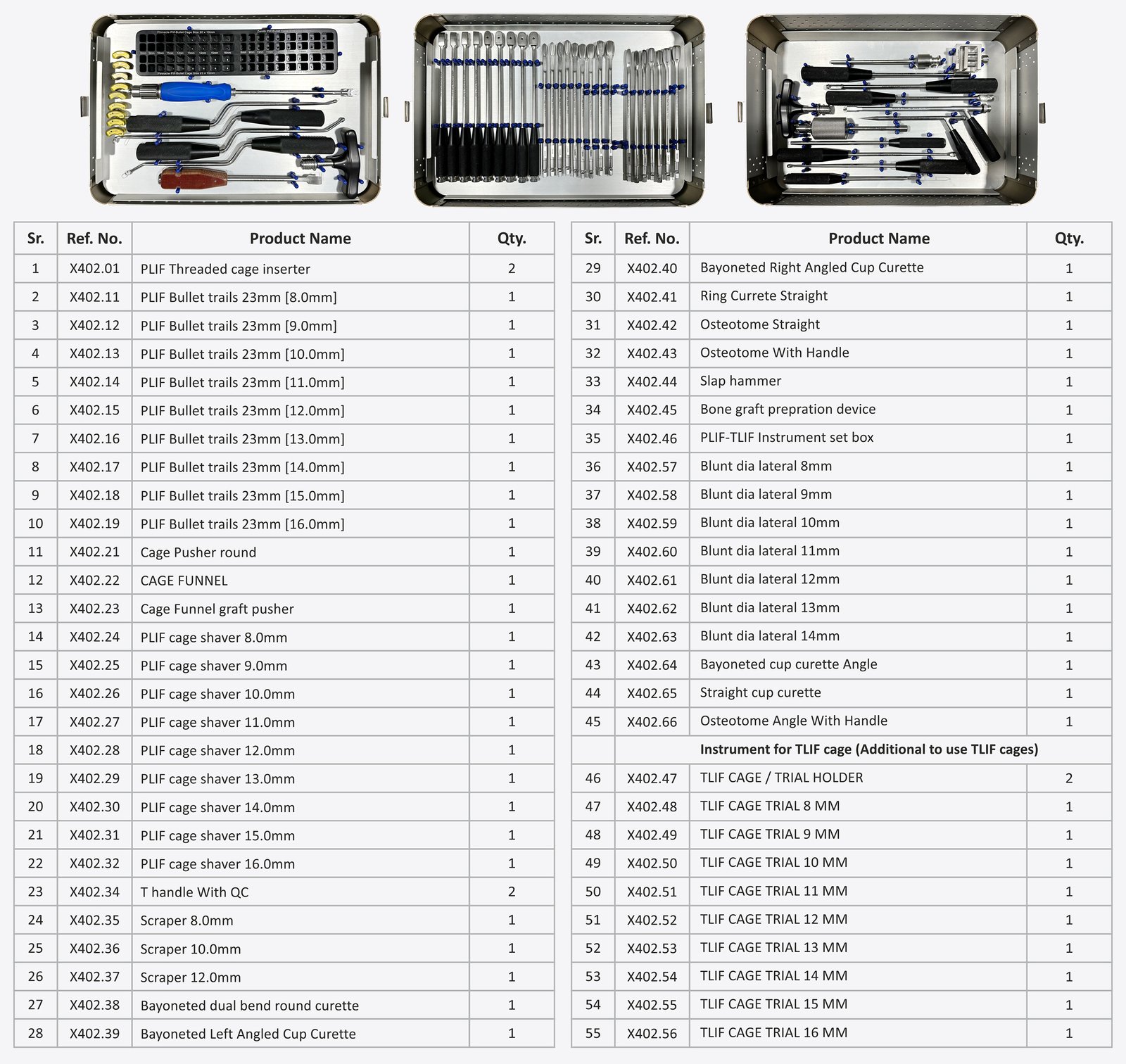 INSTRUMENT SET FOR PLIF - TLIF CAGE