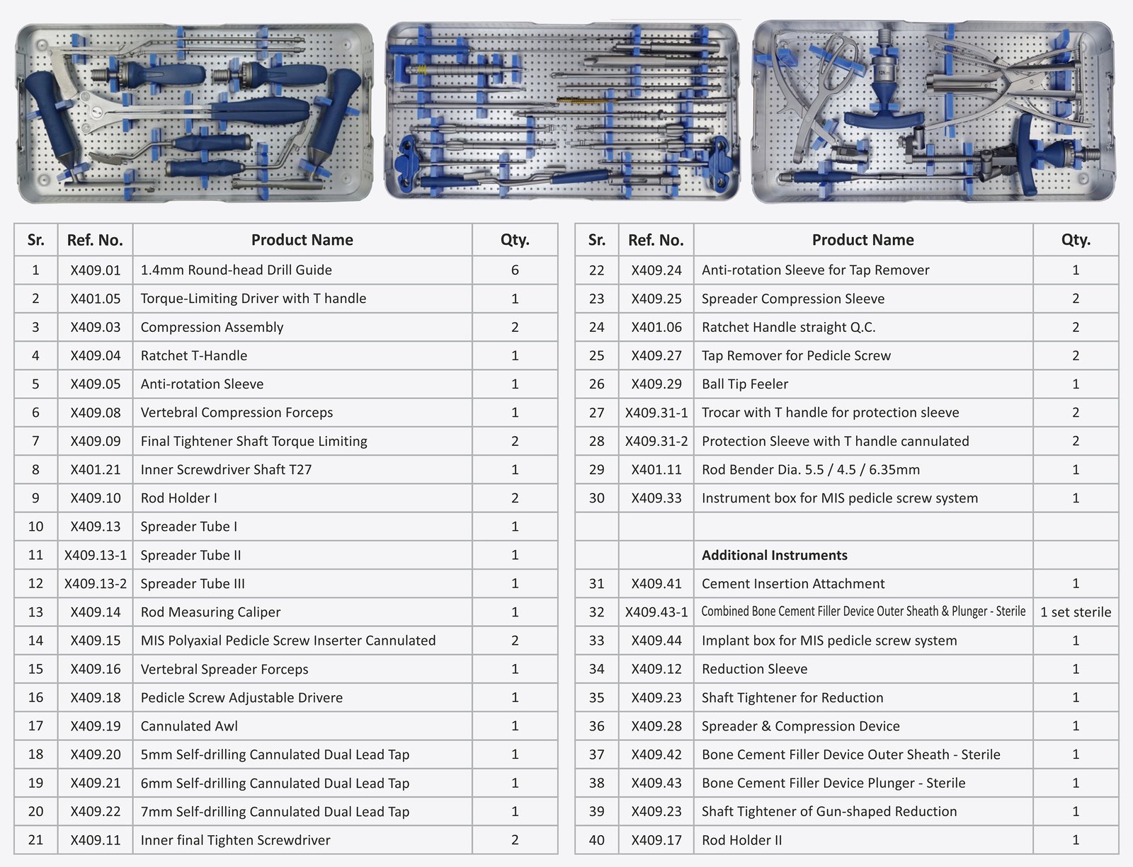 The MIS Pedicle Screw System – Fenestrated is a next-generation spinal implant engineered for high-performance in minimally invasive spine surgery (MISS). Designed to deliver maximum fixation strength, enhanced versatility, and optimal surgical outcomes, this innovative pedicle screw system is ideal for treating complex spinal conditions including spinal fractures, deformities, and degenerative disc disease.